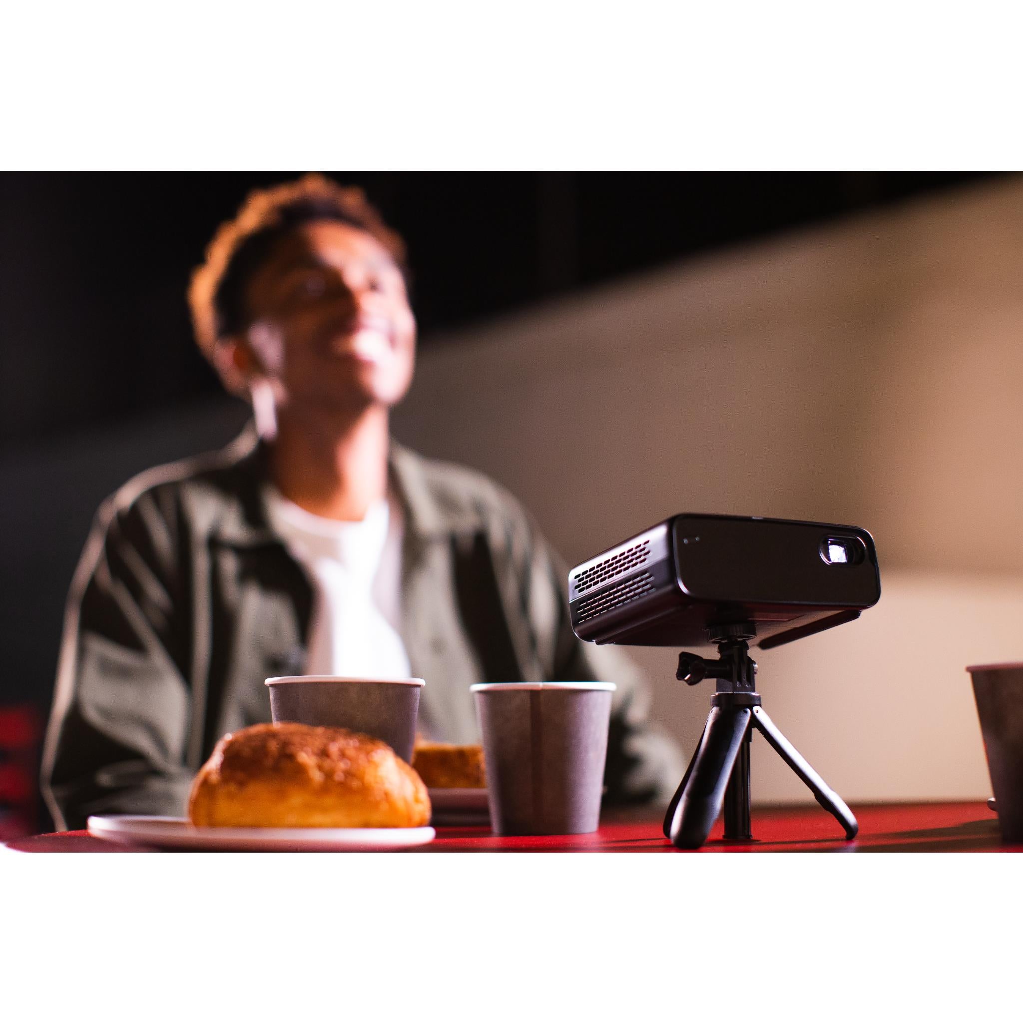 Get entertainment on the go with the built-in battery providing up to 4h of projection.